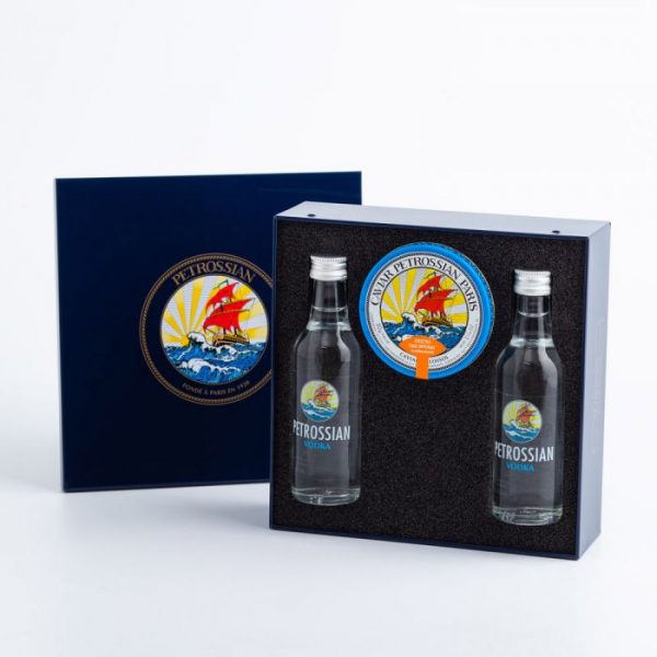 This Duo gift set is the perfect introduction to caviar for two people. It includes one of our most popular caviars, Ossetra Tsar Impérial®, as well as the perfect pairing for this caviar: two Classic Petrossian vodka miniatures.