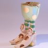 A Mary Rose Young egg cup carrying the “Gold Dots” design in blue hues…the rest of the piece is in suitably coordinating shades – a darker version of the pale blue colour making stripy socks and glamorous gold dots on the shoes! An artisan pottery creation, inspired by Easter festivities and a dreamlike gift to remember!