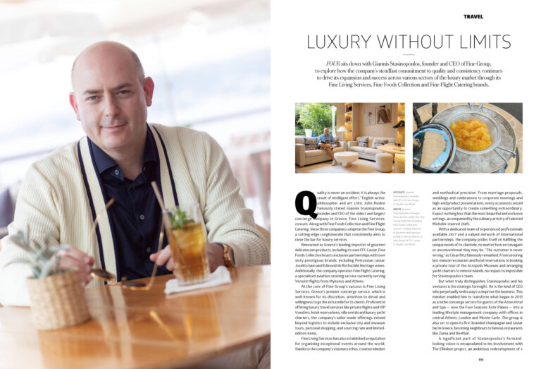 tourist services and more prominent gourmet products in Greece. Now, five years later, the brand has set the benchmark for luxury offerings in the region. FOUR speaks with the company’s founder, Giannis Stasinopoulos, to find out more…